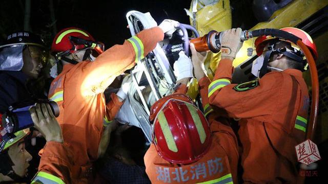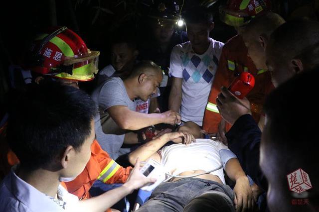 楚天都市报6月9日讯(记者陈俊 通讯员苗元凯)6月8日晚9时30分许,恩施咸丰县坪坝营杨洞村山顶路面部分垮塌,一台挖掘机经过时在黑夜中踏空侧翻,眼看就要摔下100余米高的陡崖,所幸被竹林挡住卡在半山腰。司机腰部以下被压在车内无法脱困,挖掘机随时可能滑落,司机生命危在旦夕,当地消防、公安和热心村民及时赶到,一场生死大救援在深山野林中展开。