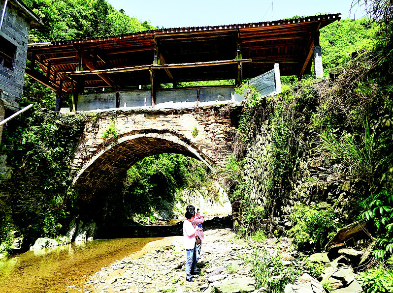 石城镇文化站站长龚益来介绍,2015年6月2日暴雨,石桥部分被冲毁。他联系上从塔坳村走出去的加拿大籍华人汪十友,募资10万元,加上乡邻捐助,花费13万余元于当年9月重修。为整旧如旧,桥基上的垒石仍保留当年瑶族先民的遗存,清光绪十四年的修桥记录原样保存在前面横梁上,此次修桥记录则刻在后面横梁上。