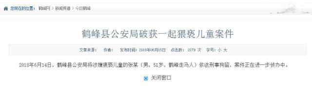 周五,鹤峰县人民政府官方网站鹤峰网发布一条消息:鹤峰县公安局破获一起猥亵儿童案件