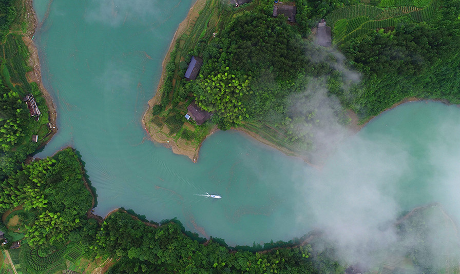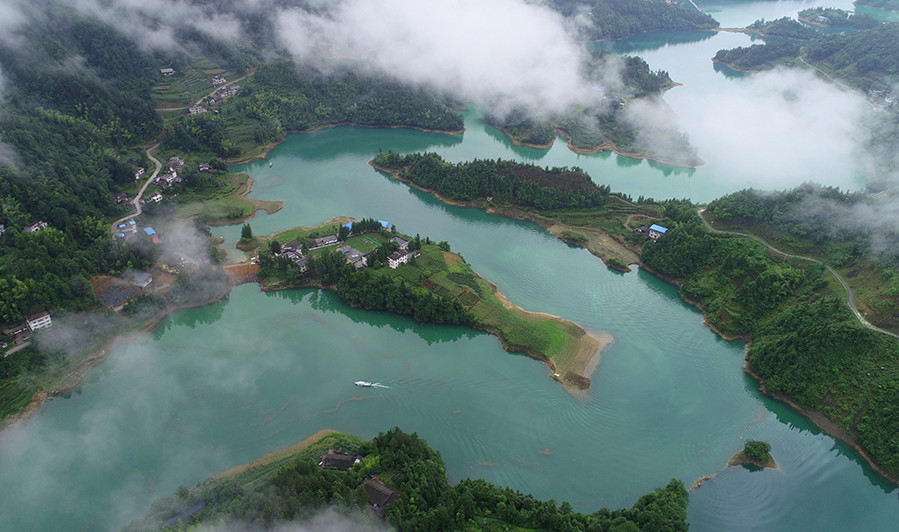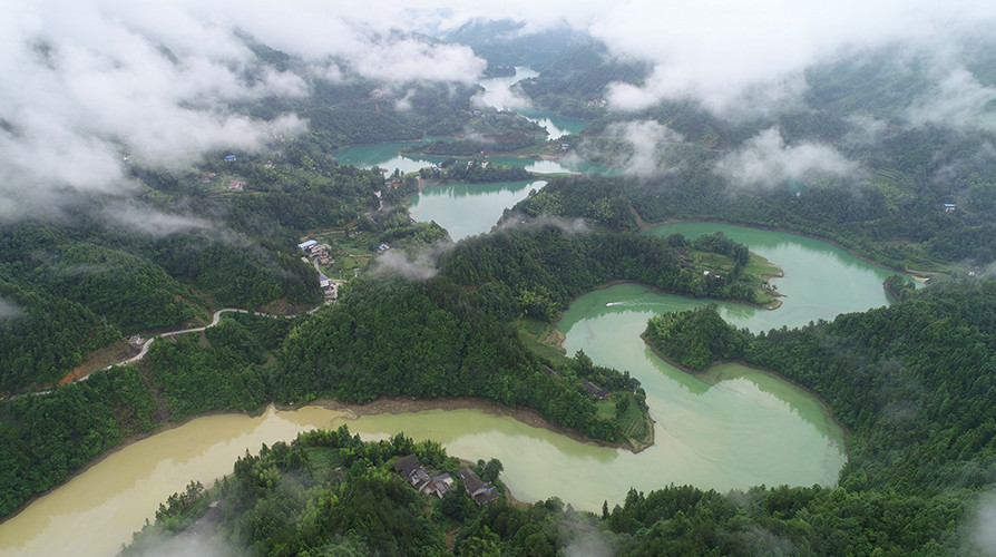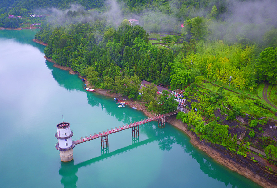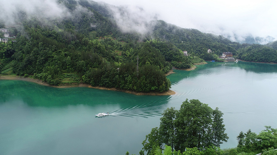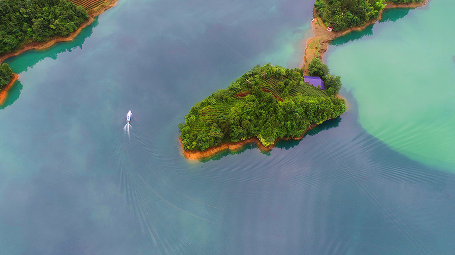 高空俯瞰,库区水质清辙。