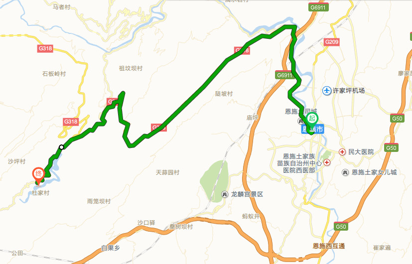 从州城出发,318国道往利川方向,在屯堡乡坎家村委会处左转,约38.1公里,驾车大约45分钟 。