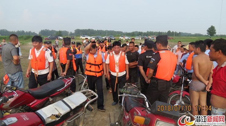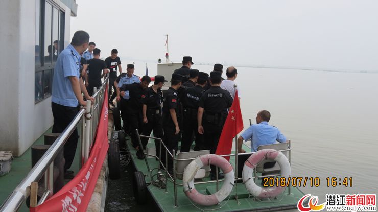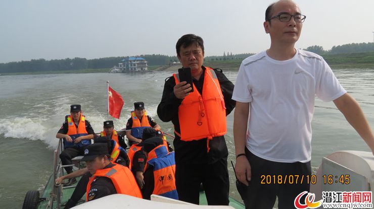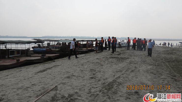 执法人员着救生衣,冒高温、战酷暑,在天门侧江滩开展执法行动