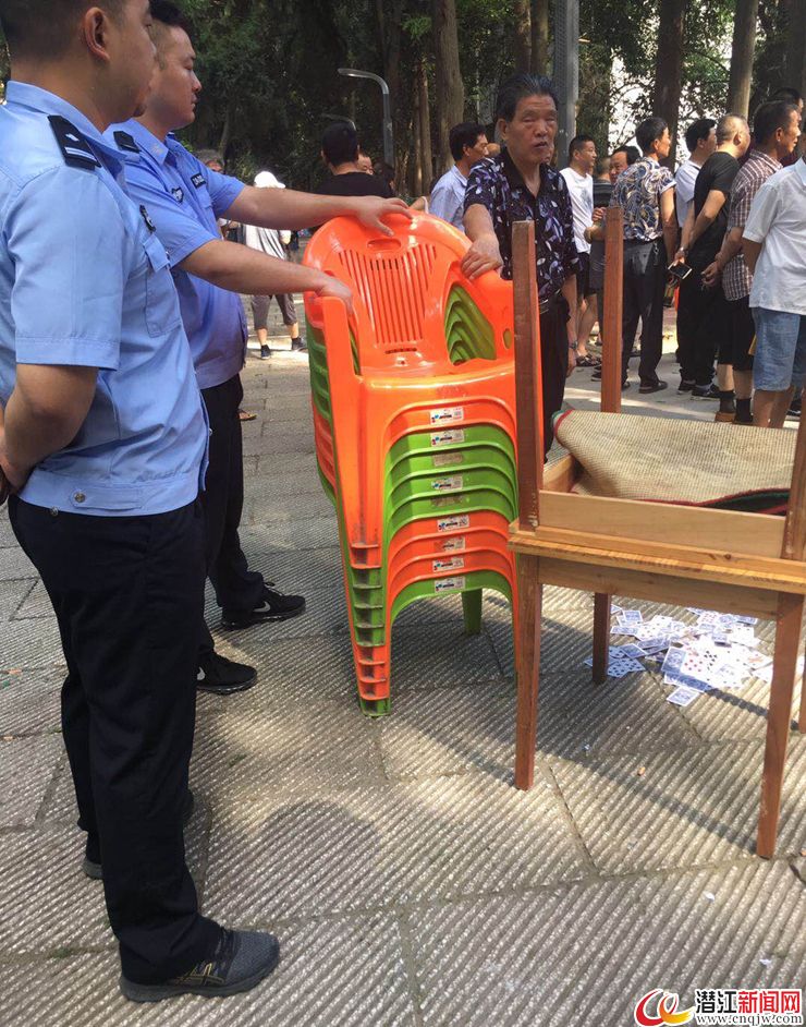 紧接着,记者便与园林派出所取得了联系,将自己所获取的信息汇报给了民警,园林派出所民警也第一时间来到现场,现场对打牌金额进行了确认,确定博彩金额没有达到赌博标准,只能对这些打牌的市民进行劝导和教育。
