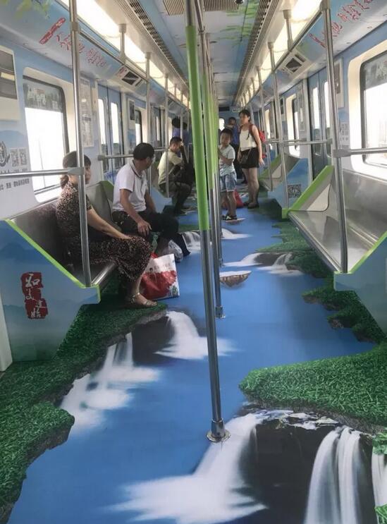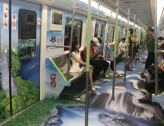 市民乘坐地铁时仿佛置身山水之中