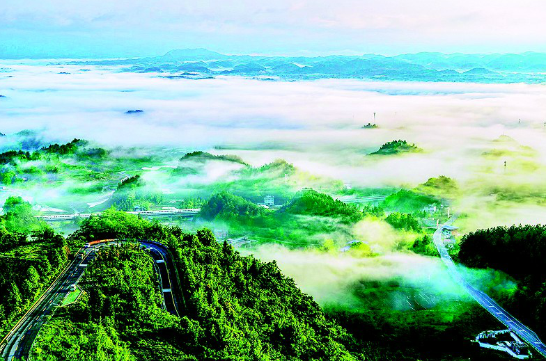 图为:玉带绕山乡。图为利川市佛宝山绿色生态旅游公路。它一头连着广袤的利川中部盆地汪营镇,一头连着佛宝山生态旅游度假区,这条公路被摄影者称为最美山路——云端山路。 (视界网 六哥 摄)