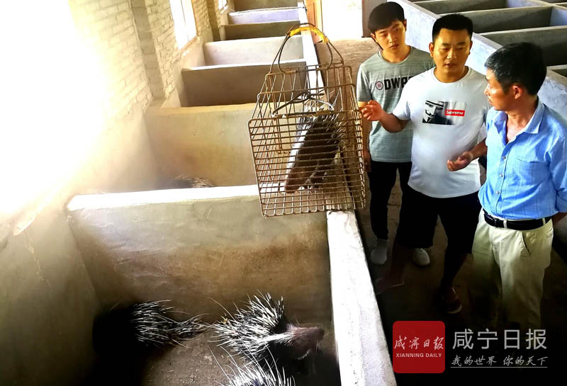 21日,通山县大路乡东坑村鸿钥豪猪基地,当地技术员在为贫困户传授技术。