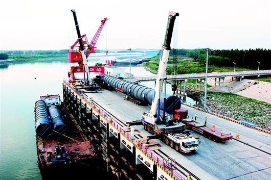 9月18日,由仙桃中意石化设备有限公司生产的特大石化设备从仙桃港起运,将经过7天航行,从上海港转运至文莱。设备长62米,直径4.5米,重150多吨。据悉,本次总共运输3个参与“一带一路”建设的特大石化设备,总重达500多吨,后续还将有6个大件从仙桃港运往文莱。