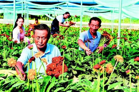 中秋、国庆双节将至,花卉需求量增加。9月20日,通城县石南镇赛公村非洲菊种植专业合作社社员抓紧采摘鲜花供应市场。