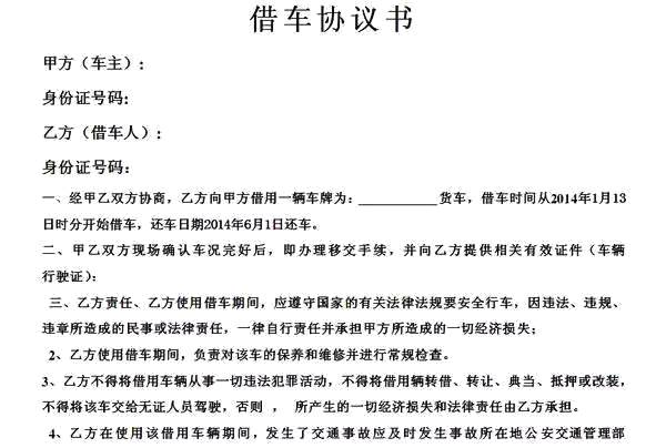 如果非要借车一定要签署一份协议!