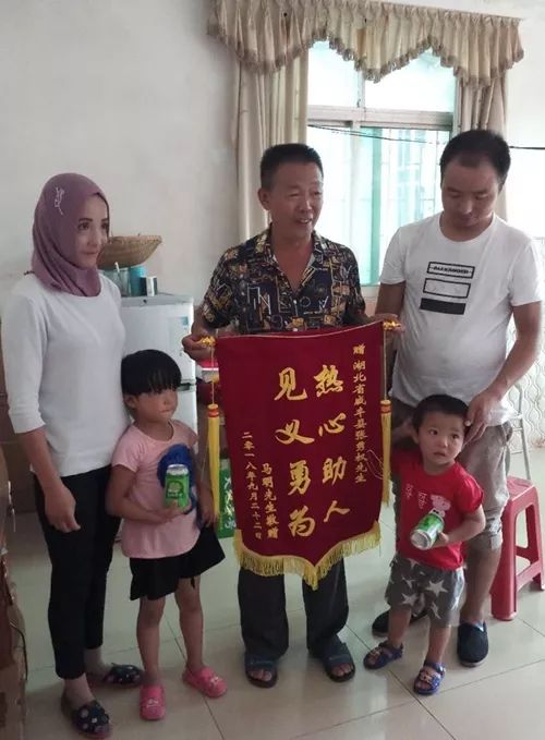 “感谢您救了我们两个孩子……”9月22日,马明夫妇带着孩子来到张秀权住处,激动地将一面印有“热心助人 见义勇为”的锦旗送到张秀权手里。