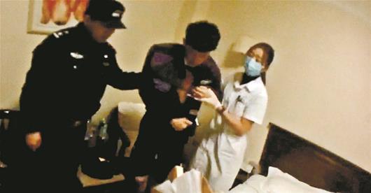 当晚9时许,恩施市公安局小渡船派出所接到冉女士报警。听明情况后,民警吴磊和同事问清是哪个宾馆房间,立刻开着警车赶去救人。
