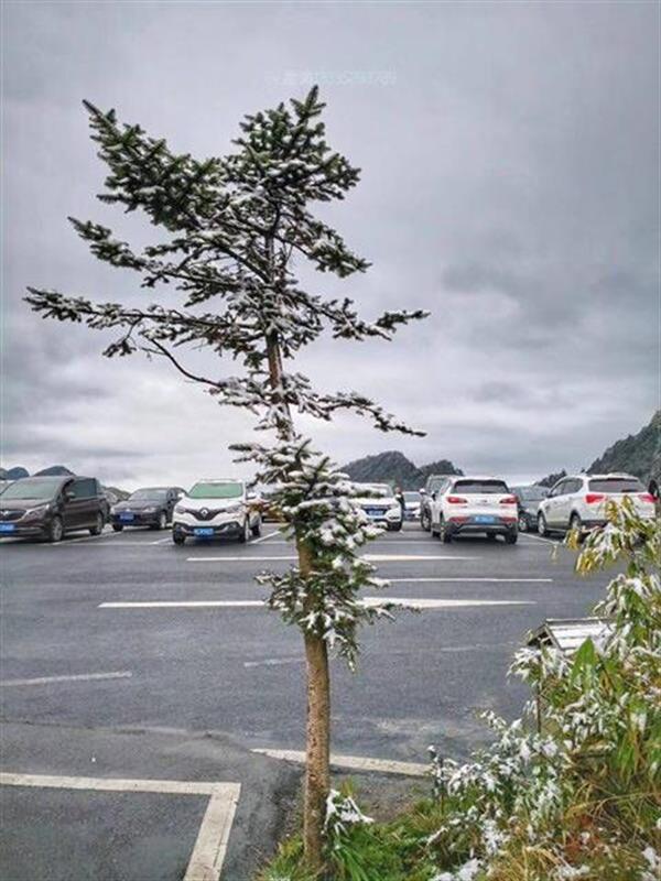 据了解,受冷空气南下影响,10月1日凌晨4时许,神农架林区神农顶附近便开始飘起雪花,不多时,地面便出现了薄薄的积雪。神农架林区神农顶景区特勤大队执勤人员冒雪坚守在岗位上,有序疏导交通,为游客出行通畅保驾护航。
