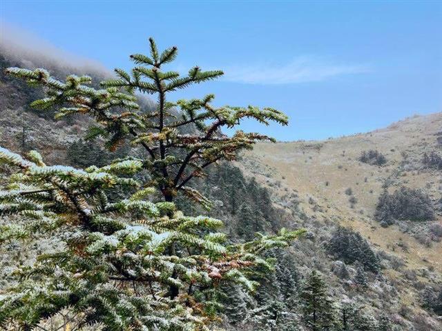 国庆首日,神农架林区海拔超过2800米的神农顶景区附近迎来今秋首场降雪,给游客带来惊喜的同时,也让神农架的秋天更添几分童话般的浪漫气息。