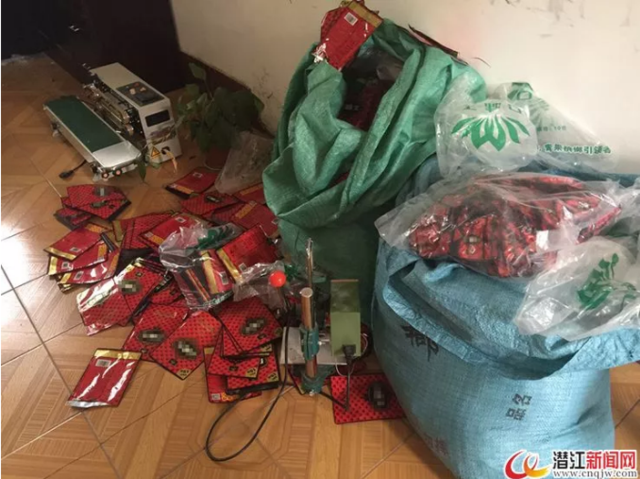 8月3日,东城工商所再次接到群众举报称袁桥村某作坊内有一疑似非法加工槟榔的窝点。接到举报后,工商部门工作人员对该作坊进行突击检查,在现场发现有大量加工包装完成的某品牌槟榔以及散装的槟榔包装袋。工作人员立即将现场3名工人带回所内进行调查,并当场扣押大量槟榔成品,真空包装机1台,封口机1台及已过保质期的槟榔包装袋。