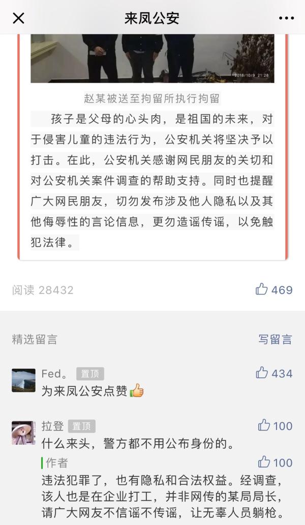 孩子是父母的心头肉,是祖国的未来,对于侵害儿童的违法行为,公安机关将坚决予以打击。在此,公安机关感谢网民朋友的关切和对公安机关案件调查的帮助支持。同时也提醒广大网民朋友,切勿发布涉及他人隐私以及其他侮辱性的言论信息,更勿造谣传谣,以免触犯法律。