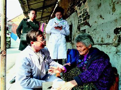 “耿婆婆好!我们来看您了。”在一座老房子前,86岁的耿良英老人正在晒太阳。看到刘医生,她手指着胸口说:“我的胃病又犯了,还头晕,正想给你们打电话呢。”刘医生仔细询问,量体温、测血压,看老人体温、血压都正常,就叮嘱老人按时服药,并让护士小尹在老人常备药的包装上写清用法,随后两人继续巡诊。每月固定巡诊两次,随时接受病人及家属咨询,紧急情况随叫随到。这是他们提供签约家庭医养服务内容的标配。