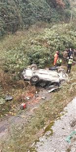 山路结冰车辆失控坠下陡坎