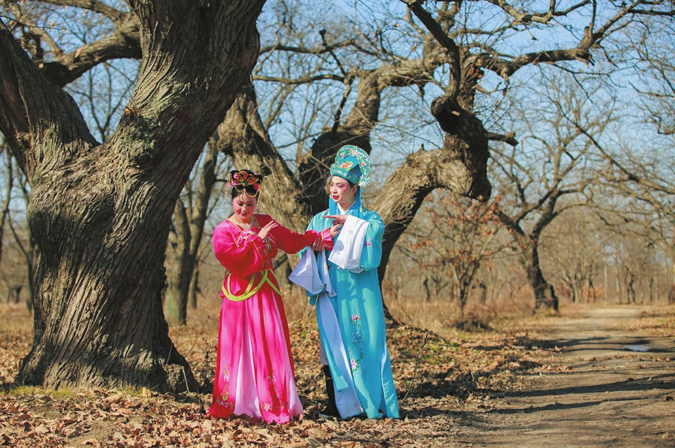 随县淮河镇近年来注重发挥淮源良好的生态资源优势发展全域旅游。图为摄影爱好者在该镇百年板栗林景点上演的古装秀。(随州日报通讯员杨峰摄)