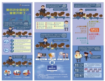 一、第四次全国经济普查的登记工作于2019年1-4月开展。届时将有佩戴普查员证或普查指导员证的普查人员进入你单位进行登记。
