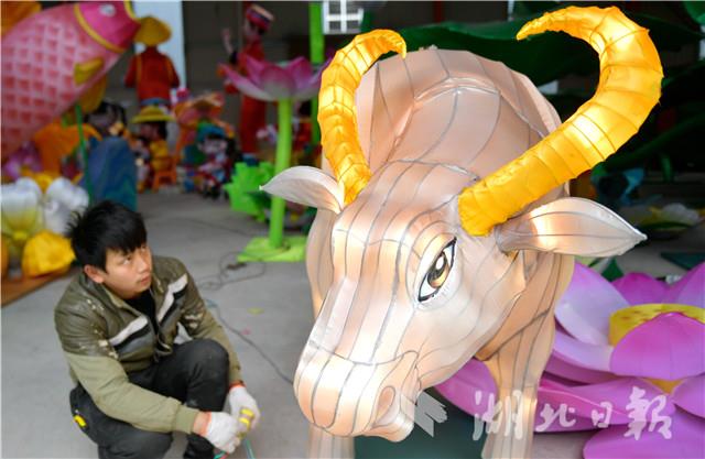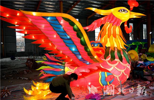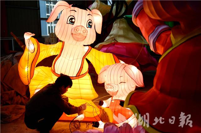 1月7日,在宣恩县和平工业园区的一间厂房里,彩灯制作艺人正在调试彩灯。进入农历腊月,宣恩县邀请近百名来自四川省自贡市的彩灯制作艺人,按照传统彩灯制作技艺,历时近两个月制作了各式各样的彩灯。目前,彩灯进入通电调试阶段。这些大型彩灯组调试完成后将布置在宣恩县城贡水河畔,成为“仙山贡水·浪漫宣恩”大型迎农历猪年新春活动的“亮点”。这是该县连续第三年举办灯展,“仙山贡水·浪漫宣恩”大型灯展已经形成旅游文化品牌,带动了乡村旅游,促进乡村振兴。(视界网 宋文 摄)