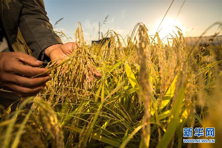 在吉林省舒兰市平安镇,农民在稻田间观察稻穗灌浆情况(2018年9月18日摄)。近年来,舒兰引导当地农户既种好水稻又“种”好品牌,在万顷稻田里书写了农业供给侧改革的鲜活故事。新华社记者 许畅 摄