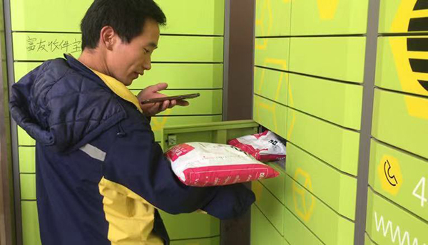 刘涛将快递放入快递柜。