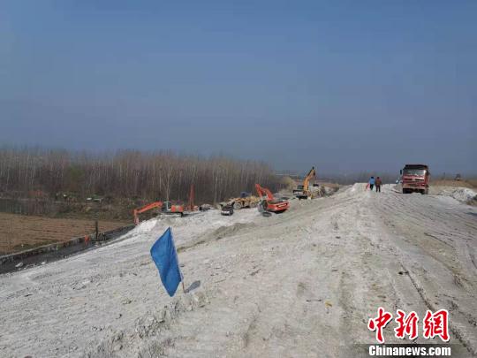 中新网襄阳3月13日电 (胡传林 谭天福)位于湖北襄阳樊城汉江河道边的一处工地上,大型机械近日正在紧张施工。