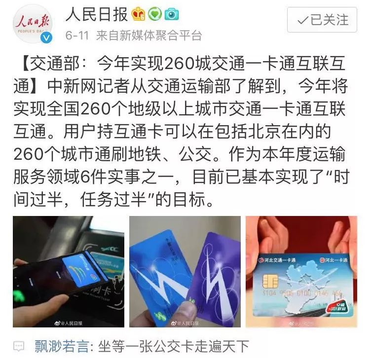 实现了交通一卡通互联互通