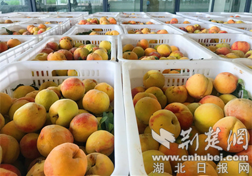 荆楚网客户端-荆楚网消息(记者安从斌 通讯员梁刚)7月1日, 湖北田野农谷生物科技有限公司的原料车间里,一枚枚金色的新鲜黄桃被送至深加工车间,经过多道工序后成为香甜可口的果汁。