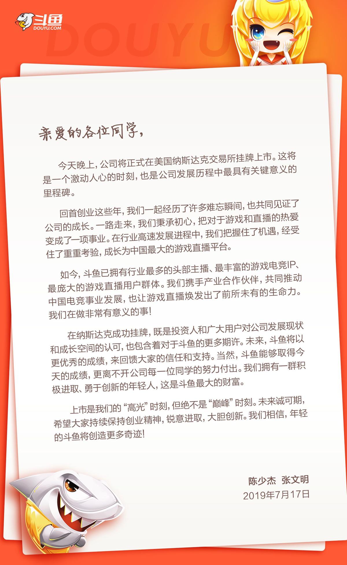 “过去5年间,我们把握住了直播行业发展的契机,也经受住了种种困难和考验。”斗鱼创始人陈少杰称,本次募资将用于提供更多优质电竞内容,增强技术和大数据分析能力,提升用户体验和运营效率,并加大营销力度,以提升斗鱼的品牌影响力、扩大用户基数。