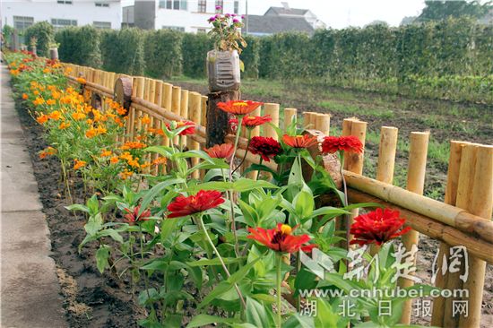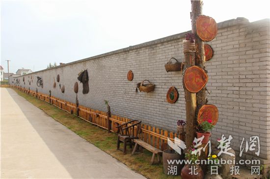 在七星台镇董家湾村,干净的便民小道连通整个村庄,沿途的农家小舍错落有致,绿树阴浓,花开满架。通村干道边有着长达1公里的文化墙,篱笆、鲜花和民俗物件相得益彰,醇厚的乡韵民风扑面而来。