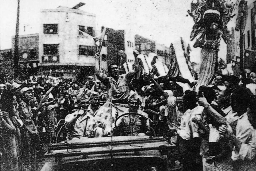 武汉人民庆祝抗日战争胜利。(资料图片)新华社发