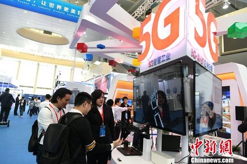 资料图:4月19日,5G产业促进大会在福州海峡国际会展中心举办,参观者现场体验各种5G产品。中新社记者 王东明 摄