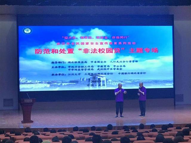楚天都市报9月19日讯(记者李月媛 通讯员许春春 )“‘非法校园贷’并没有彻底消失,而是换上了新‘马甲’。”今日,武汉市委国安办、市金融局联合举办的“迎大庆、保军运、筑安全、你我同行”国家安全宣传系列之“防范和处置‘非法校园贷’”主题宣传教育活动在江汉大学拉开帷幕。