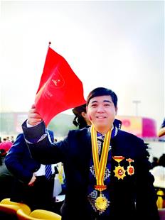 党的十九大代表王光国,是恩施建始县龙坪乡店子坪村支书,他曾带领村民攀上悬崖凿山开路,被誉为新时期的“愚公支书”。“把五星红旗贴在脸上,为祖国庆生!”王光国用了三个万分表达自己的心情:万分激动,万分自豪,万分感谢。庆典仪式上,当脱贫攻坚主题的花车徐徐驶来,王光国激动地站起来,带着红旗的笑容格外灿烂,胸前的“全国脱贫攻坚奖”奖牌也格外闪亮。