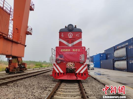 中新网武汉10月12日电 (王遥遥 梁婷)满载武汉特产——“黄鹤楼”浓香型白酒的40英尺大柜12日“搭乘”中欧(武汉)班列,从武汉吴家山铁路中心站驶出,预计于15天后抵达德国杜伊斯堡。这是武汉市、湖北省白酒首次“搭乘”中欧(武汉)班列出口至欧洲。