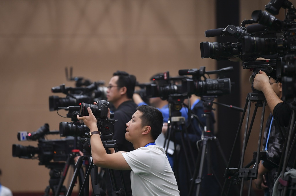 10月15日,记者在专题新闻发布会上采访。
