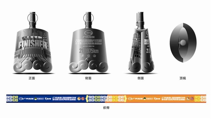 “水电夷陵”奖牌 全程、半程马拉松奖牌效果图 正面 背面 侧面 顶视