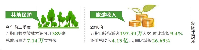 将生态保护责任与群众利益直接挂钩,换回的是森林生态安全的进一步保障。2018年,五指山完成造林1114亩,对162石场与畅好居14队石场回填土方超过10万立方米,完成50亩山体复绿工作,同时着力推进湿地保护专项工作,完成生态敏感区域2.28万余亩湿地划线工作,对牙排水库3565.4亩湿地加以保护。
