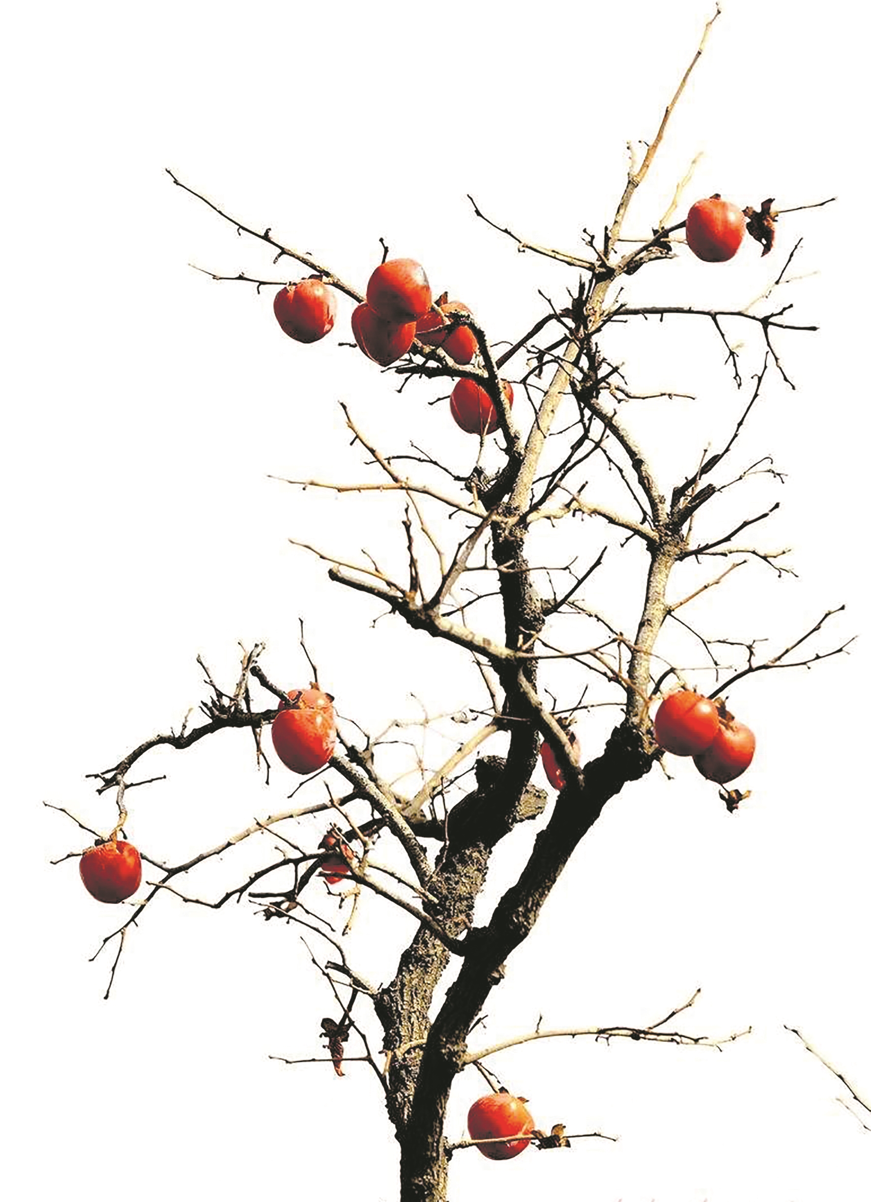 老家院子里,也有一棵柿树。一到秋天,房前屋后,落叶纷纷。桃树、杏树、梨树、枣树,只剩光秃秃的枝桠,冷冷地刺向天空。柳树徐娘半老,虽然叶子泛黄稀拉,但只要有一阵风,她们仍细腰翩跹,风韵犹存。苦楝树上,一挂一挂的苦楝子,像一群孤苦伶仃的孩子,苦哈哈的在风中摇摆不定……