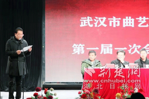 荆楚网客户端-荆楚网消息(记者 董育雄 通讯员 邓鼐)11月28日,武汉市曲艺家协会第一届一次会员大会在汉召开。武汉市文联党组书记、副主席李蓉,武汉市文联党组成员、副主席王开学,著名湖北评书表演艺术家何祚欢,以及武汉市民政局相关领导等出席会议。