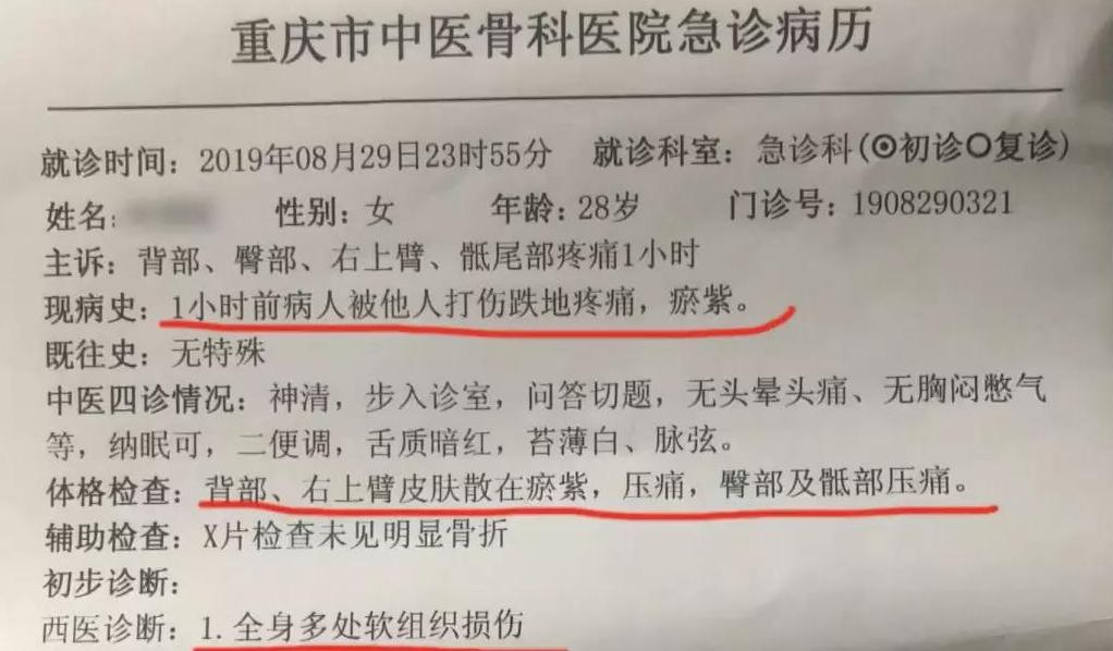经医院检查,宇芽全身多处软组织损伤。