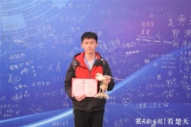 记者从现场了解到共有68组作品进入到17楼的挑战,不少装置在7楼降落的初赛中出现一定损坏,学生马上现场进行修理。17楼难度系数直线上升,但是仍有36个装置完美完成任务,这些“战甲”做工都十分精细,螺旋桨做的比较大且十分轻盈,减震构件也十分合理。“我们4个人大概花了12多个小时来做这个装备,削牙签就花了4个多小时,600多根牙签。做的特别精细,你看我们的减震装备就是把牙签从中间砍开,制作成弯曲状提升减震。”参赛学生邢建龙说道。“看,这个下落的速度好平缓啊,机翼旋转的特别好,这个一定会成功。”只见c19组装置像风车一样旋转着垂直落下,是整个比赛下落最慢,最稳的装置,也成功获得一等奖。