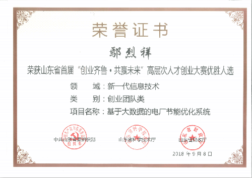 获奖证书。 翻拍:邓洲
