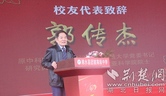 杰出校友、原中国科技大学党委书记郭传杰讲话。记者 王焱尧 摄