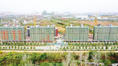 12月16日,应城经济开发区文峰社区二期棚户区改造项目建设如火如荼。昔日棚户区靓丽转身优质小区,5栋住宅楼将容纳1200多人居住。该棚户区改造项目区位优势明显,交通便利,毗邻优质教育资源,环境优美,将建设成为优秀的样板式宜居小区。(特约记者 刘振宇 摄)
