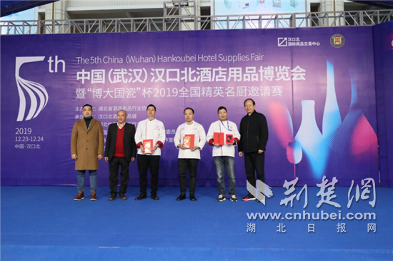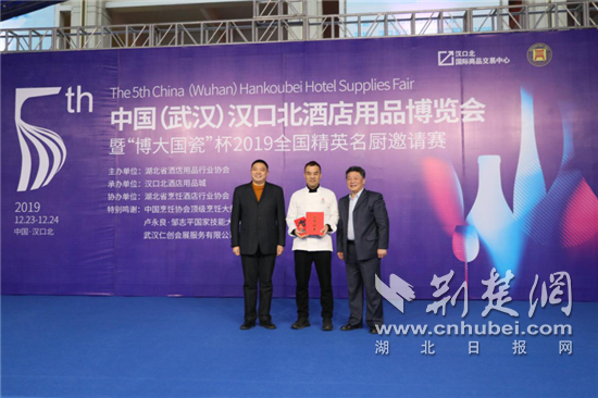 荆楚网客户端-荆楚网消息(通讯员 姜振泽)12月23日,第五届中国(武汉)汉口北酒店用品博览会在汉口北酒店用品城盛大启幕。同期举办的“博大国瓷”杯2019全国精英名厨邀请赛顺利开赛,吸引了来自全国的60位精英名厨代表现场秀绝活。经过一天的激烈角逐,分别评选出冠军1名、亚军2名,季军3名,最终来自武汉原生态厨坊的选手陈彦斌夺冠。