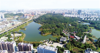 日前,无人机拍摄的温泉城区绿意盎然、风景如画。鸟瞰咸宁,山水相依,城林相间,城在山中,水绕城转,楼在景中,人在画中。近年来,我市不断绿化美化城区环境,提升城市整体形象,先后被授予“全国绿化模范城市“国家森林城市”等。咸宁日报全媒体记者袁灿摄