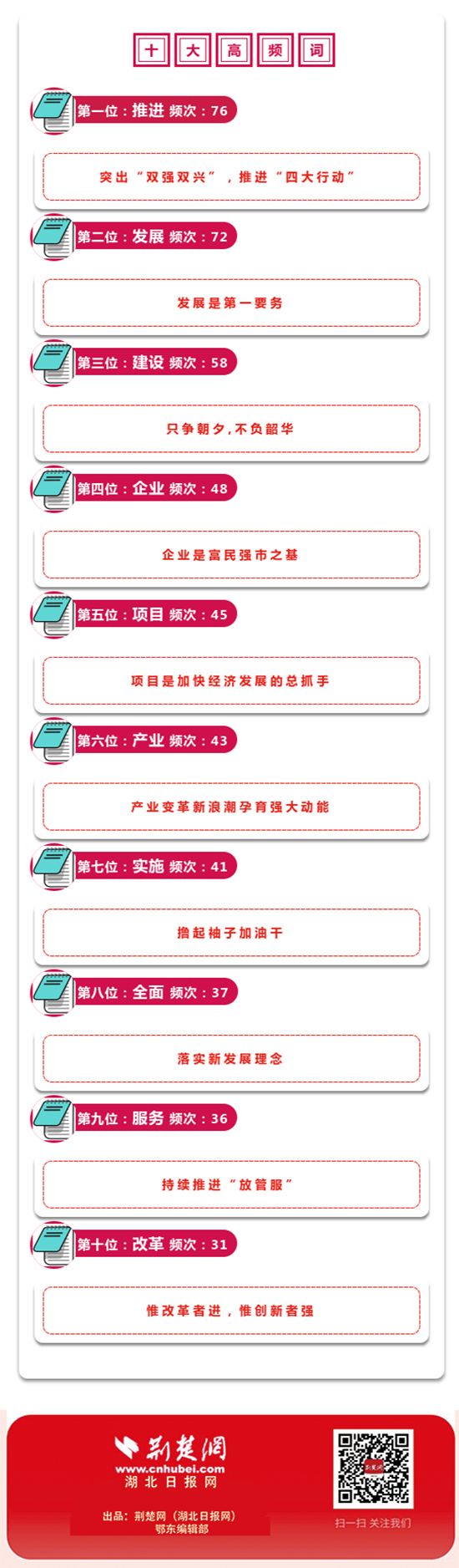 《政府工作报告》约12900字,内容扎实、干货多多。通过大数据分析,荆楚网(湖北日报网)记者梳理出了报告中的十大高频词,一起来看看吧。