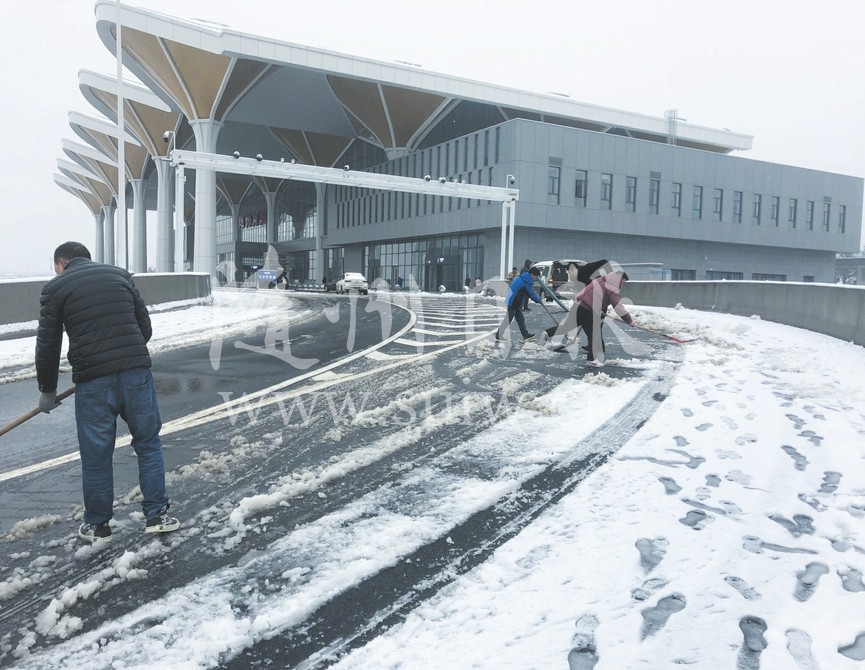 1月9日,随州高铁南站组织清除积雪,确保出行安全。(随州日报全媒记者张清摄)